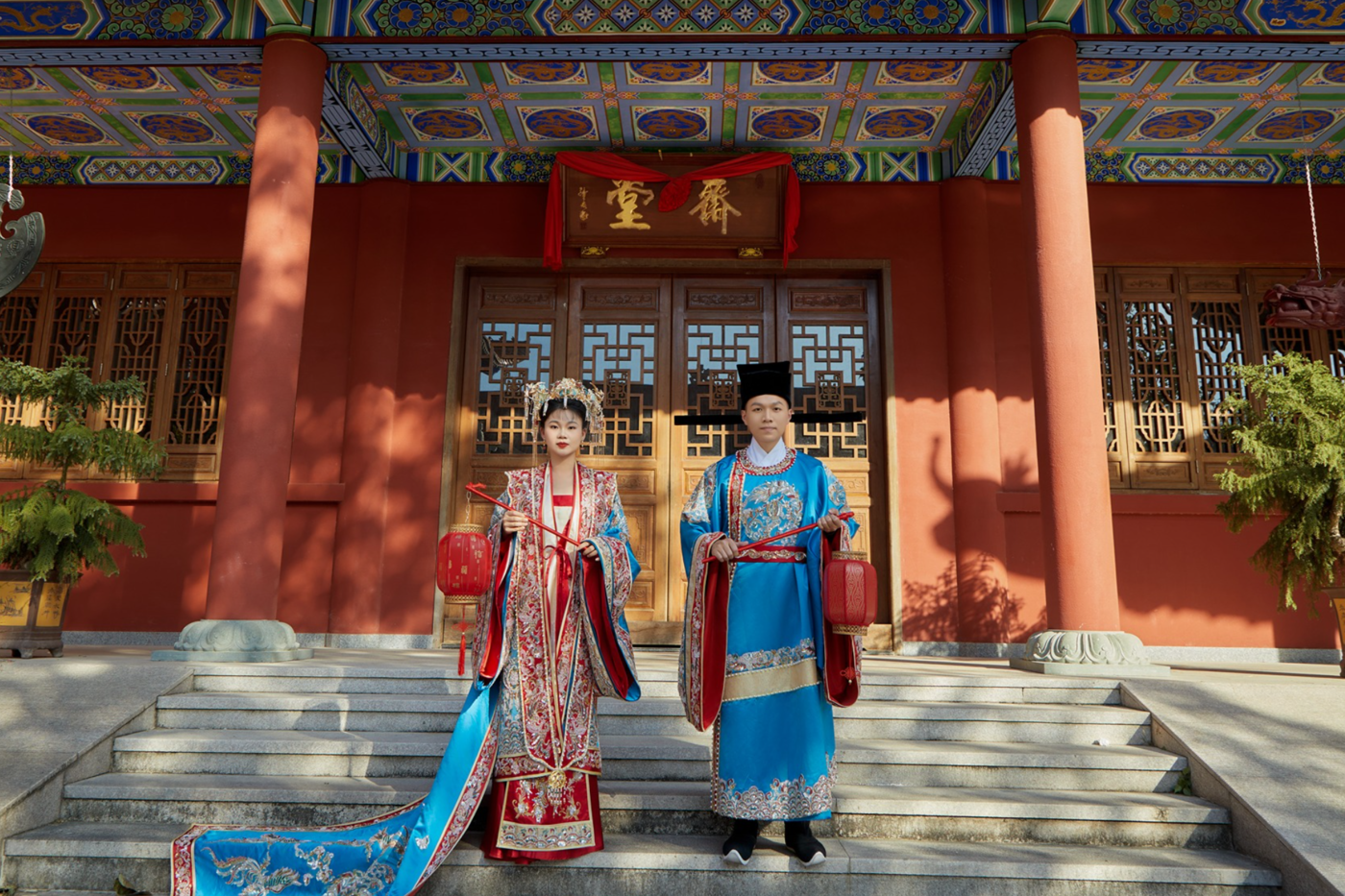 【惠州路线】 汉服经历岁月的沉淀, 精致绝美,富有仪式感。 婆婆逢人就夸的明制汉服婚纱照[更多…]