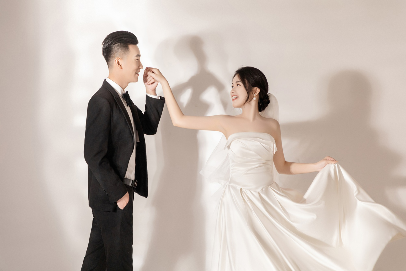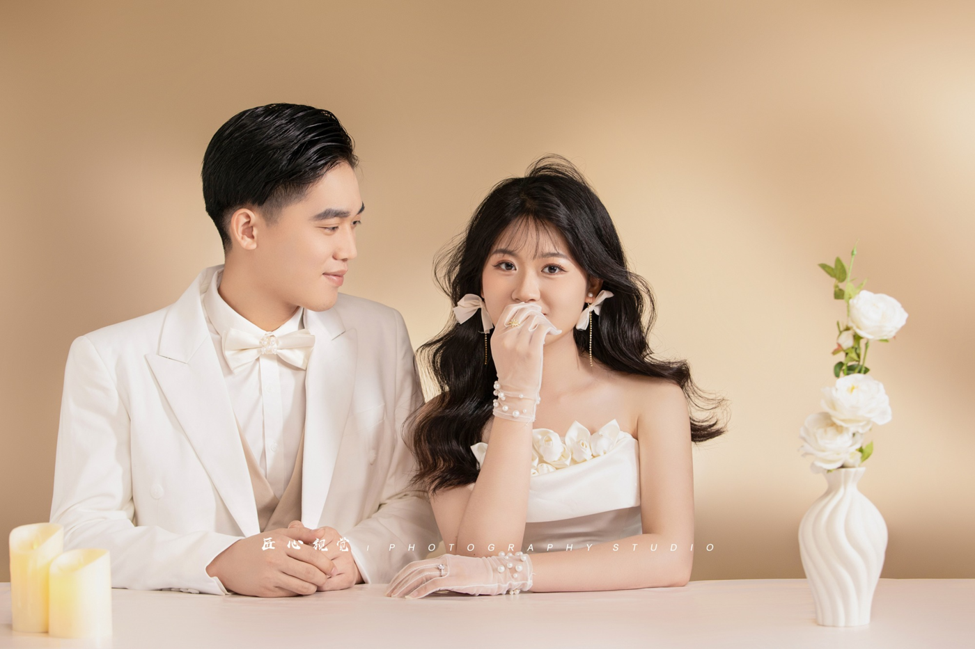 纯色空间里加上光的投入✨ 轻松不刻意的甜蜜互动💑 赋予了爱情细腻的温柔🎊 干净温柔的色调烘托浪漫氛围[更多…]
