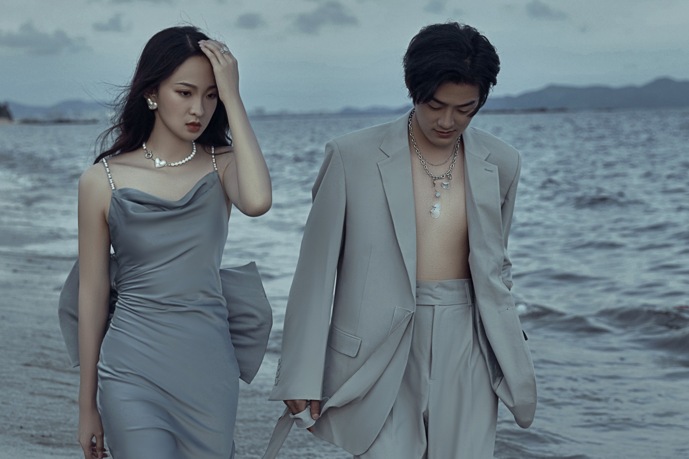 高定的睡衣礼服,丝滑的质感,莫兰迪灰色的色调,独特的婚纱照风格[更多…]